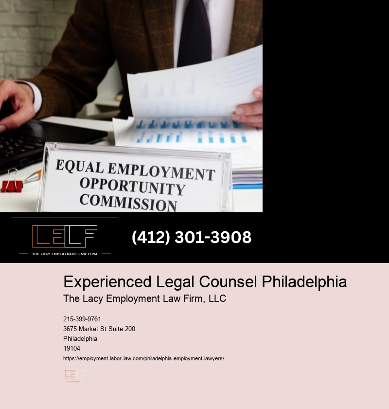 Therefore, they're committed to offering strategies that address harassment head-on, ensuring a safer and more inclusive work environment for all employees. Read more about Experienced Legal Counsel Philadelphia here It's crucial for individuals facing employment law issues in Philadelphia to know where to turn for help. These steps can significantly reduce the likelihood of legal issues arising in the workplace. The Lacy Employment Law Firm LLC emphasizes that employees should familiarize themselves with their legal protections.