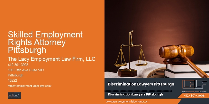 The Lacy Employment Law Firm stands at the forefront of defending workers' rights in Skilled Employment Rights Attorney Pittsburgh, providing comprehensive legal support for those facing workplace discrimination. Whether it's discrimination, wrongful termination, or wage and hour disputes, they've got the expertise to navigate the intricacies of employment law. The Lacy Employment Law Firm boasts a team of attorneys renowned for their expertise and specializations in employment law.