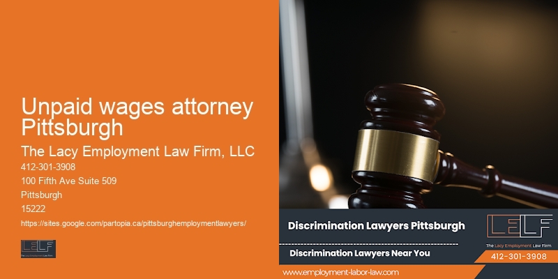In essence, Andrew Lacy Jr.'s legal strategy and philosophy reflect a blend of traditional diligence with innovative practices. They've carved a niche in the Unpaid wages attorney Pittsburgh legal landscape as a beacon of hope for employees who've suffered injustices in the workplace. This includes, but isn't limited to, the right to a minimum wage, overtime pay, freedom from discrimination, and the ability to take unpaid, job-protected leave for specific family and medical reasons under the Family and Medical Leave Act (FMLA).