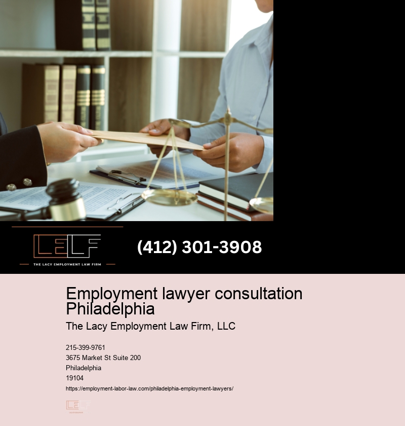 They're not just representing you in court; they're advocating for your rights, dignity, and future. Text before the meta title text for each paragraph Employment lawyer consultation Philadelphia Text after the meta title text paragraph You've got a dedicated team at Lacy Employment Law Firm ready to stand by your side, armed with the expertise and determination to pursue justice. Our team at Lacy Employment Law Firm keeps you informed and compliant, reducing the likelihood of legal issues arising from outdated practices. We'll meticulously review your case, explain your rights, and develop a strategy tailored to your situation.