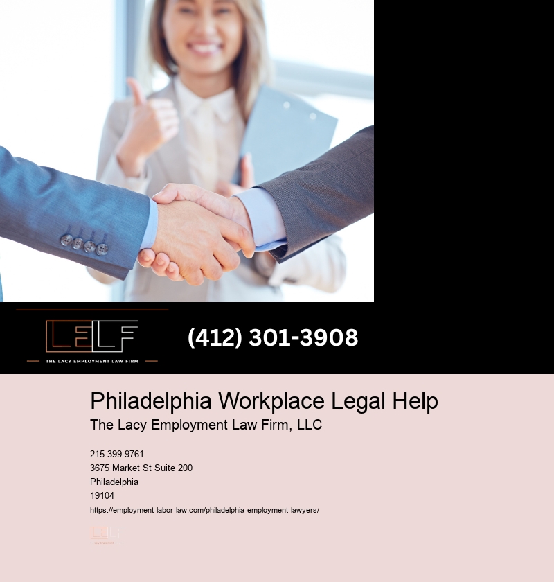 With a proven track record, Lacy Employment Law Firm LLC excels in navigating the complexities of employment law, ensuring clients' rights are robustly defended. Legal aid isn't just about representation in court; it also encompasses consultations, document preparation, and negotiations with employers or opposing parties. Lacy Employment Law Firm LLC's advocacy has significantly reshaped Philadelphia's employment landscape, challenging longstanding practices and setting new benchmarks for worker rights. Private Sector Employment Law This move ensures that the Lacy Employment Law Firm LLC isn't just closer in distance but more aligned with the community's specific legal challenges. Their goal is to secure a severance package that reflects the value and contributions of the employee, while also considering their future career prospects.