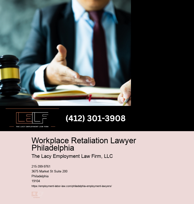 In essence, Lacy Employment Law Firm LLC isn't just in the business of practicing law; they're in the business of restoring fairness and dignity to Philadelphia's workforce. For instance, they've successfully argued cases that not only resulted in substantial settlements for their clients but also forced companies to revise their harassment policies. They're prepared to fight vigorously for their clients' rights, aiming for outcomes that not only compensate victims but also contribute to a safer, more respectful working environment for all. It's crucial to find someone who communicates clearly and prioritizes the client's needs, making the process as smooth as possible. They're thorough, leaving no stone unturned, because they understand that the details can make or break a case. Learn more about Workplace Retaliation Lawyer Philadelphia here